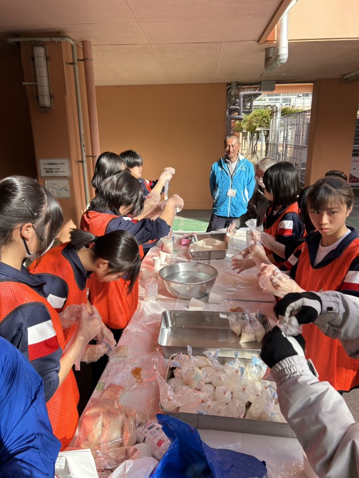 「頼もしい地域の助っ人!地元中学生の皆さんも炊き出しを一生懸命手伝ってくれました。」