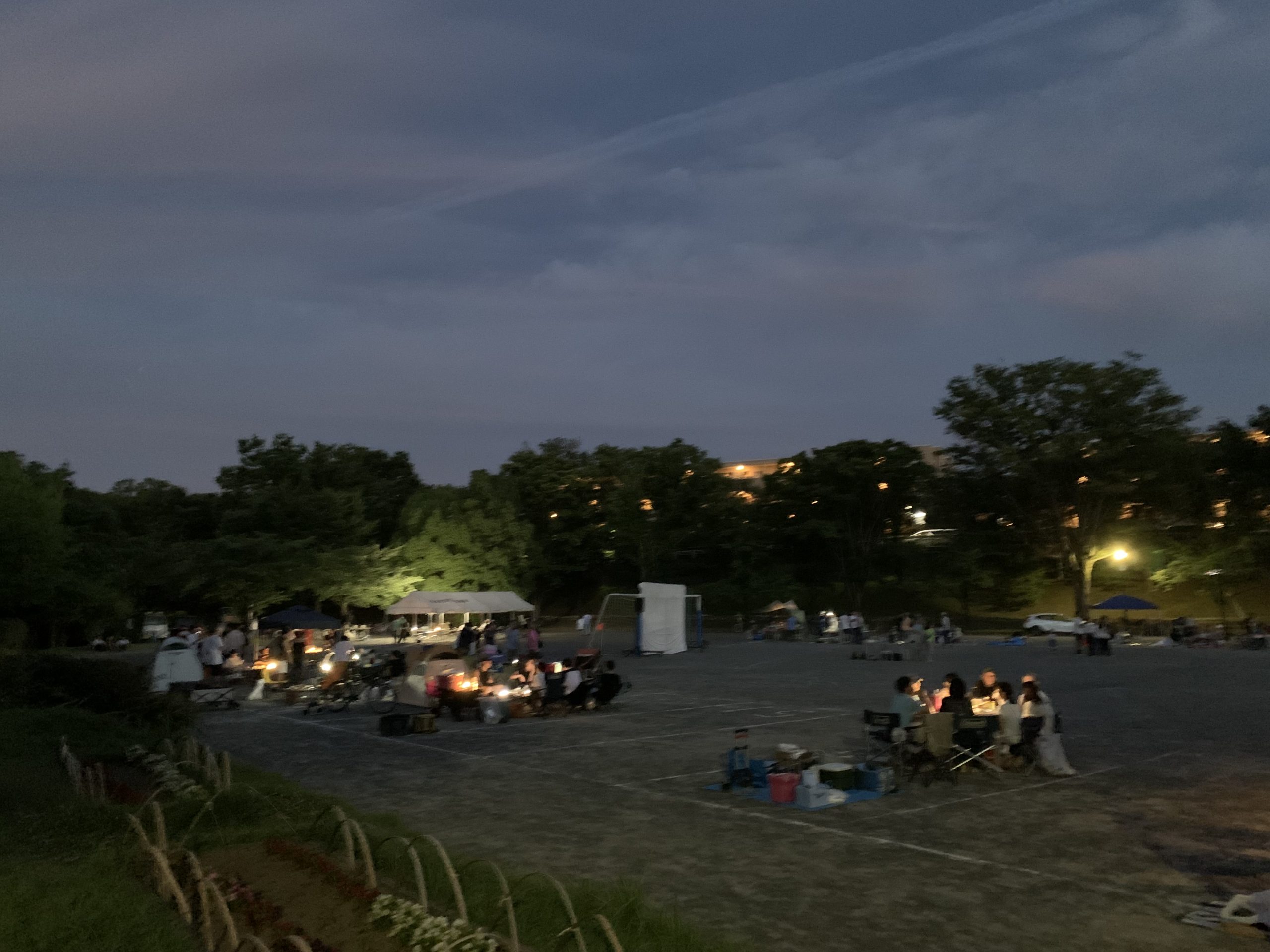 今年も牛が谷公園で夏キャンを開催ました。夕方のスイカ割りから始まりましたが、キャンプファイヤーは組み上げた木が乾燥していない生木であったため点火に一苦労し時間がかかってしまいました。夜、恒例の映画上映を行い無事終了し、集まった皆様で夏のひと時を楽しみました。