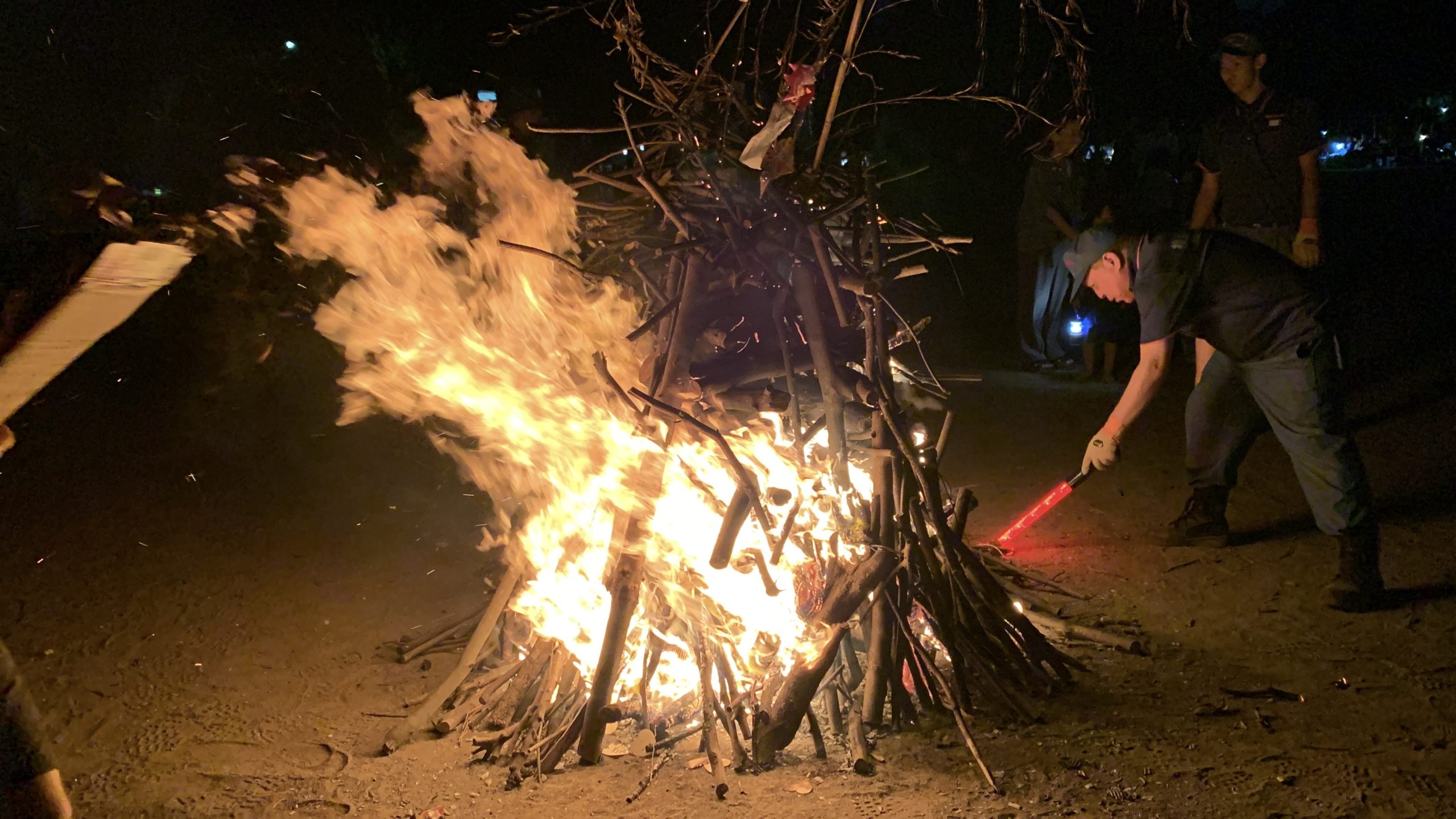 点火タイミングから遅れること30分、やっと火がつきました!頑張った皆様ありがとう!
