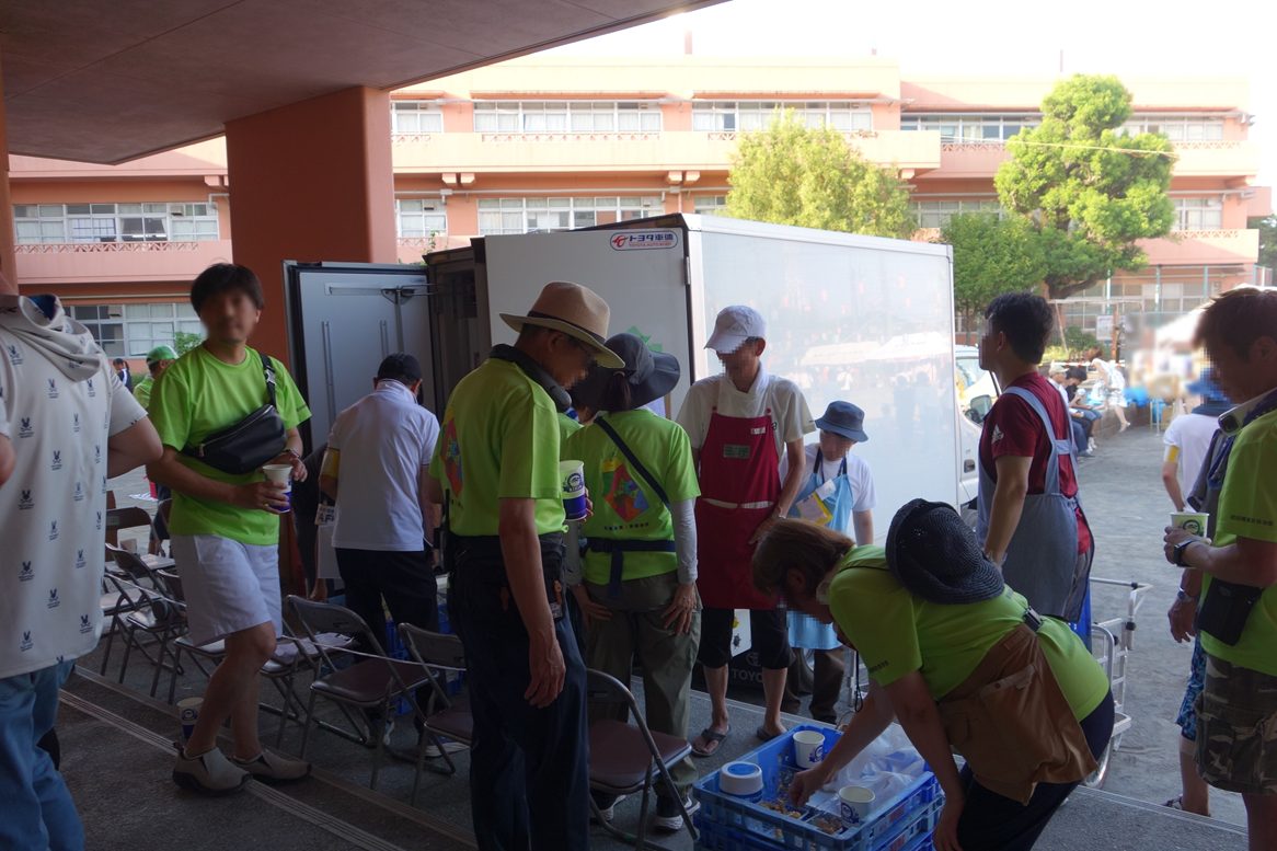 夏祭りの大きな冷蔵庫、保冷車で食材を管理しています。